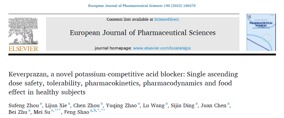 2023年9月15日,由黑料网医药独家商业化的首款国产自主研发的钾离子竞争性酸阻滞剂(P-CAB)盐酸凯普拉生片(商品名:倍稳®)在健康受试者中开展的单剂量递增Ⅰ期研究结果正式在线发表于European Journal of Pharmaceutical Sciences(IF=4.6)1。