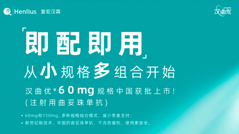 On August 17, 2021, Henlius (2696. HK) announced that the Company had recently received the Approval Letter of Supplementary Application issued by the National Medical Products Administration (NMPA): HAN QU YOU® (trastuzumab, Zercepac in the EU) was formally approved by the NMPA for the sNDA of new strength (60 mg/vial, free of preservatives). After adding a new strength of 60 mg/vial in China, patients can use different strengths of HAN QU YOU® for more flexible medication.