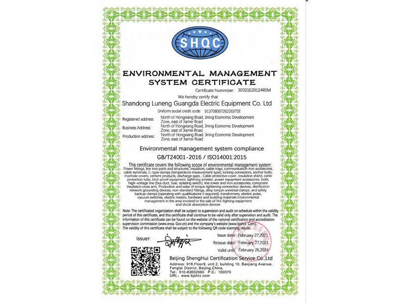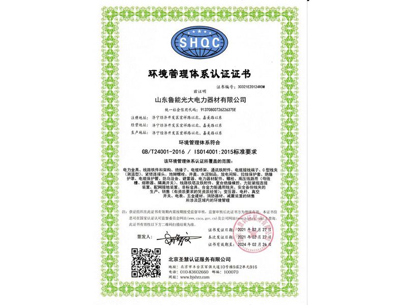 環(huán)境管理體系認(rèn)證證書(shū)