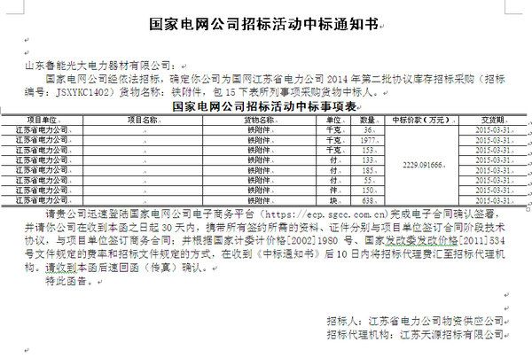 國(guó)家電網(wǎng)公司招標(biāo)活動(dòng)中標(biāo)通知書 2016-2-16 本文被閱讀 2645 次
